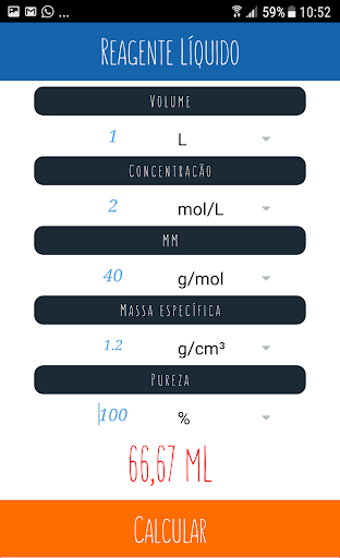O aplicativo objetiva fornecer várias ferramentas de cálculos Químicos para facilitar sua vida, sendo acrescentadas com o tempo novos recursos.