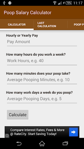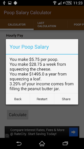 Calculate your poop salary by answering a few simple questions!