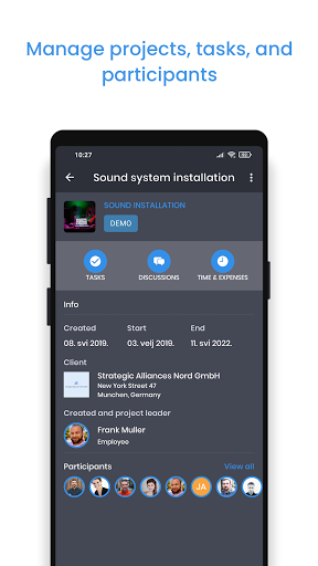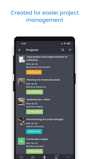 Manage the unlimited number of projects, tasks, and participants within the app. Created for easier tracking of projects and tasks. Stay informed of project progress wherever you are.