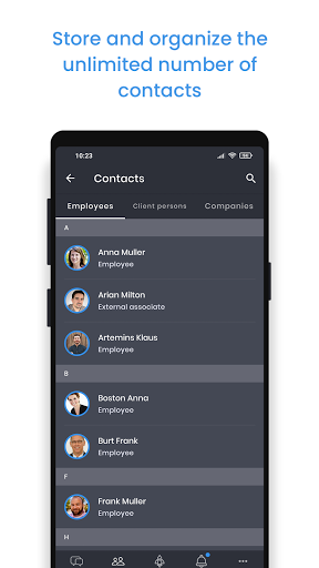 Contact management enables you to store and organize the unlimited number of contacts – clients, suppliers, employees, external associates, and others.