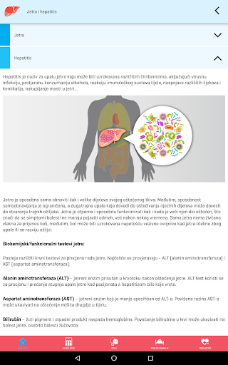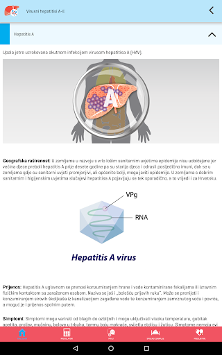 Aplikacija na pregledan i zanimljiv način pruža korisne informacije o jetri, hepatitisima i utjecaju hepatitisa na jetru, uključujući načine prijenosa hepatitisa i rizike, prevenciju, testiranje, liječenje i život s bolešću s fokusom na hepatitis B i hepatitis C, sukladno važećim znanstvenim i stručnim spoznajama.