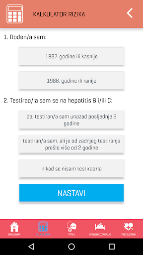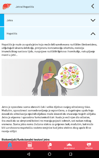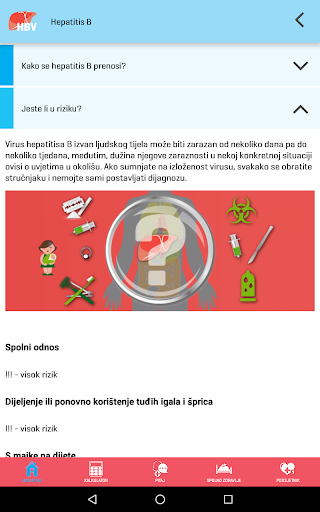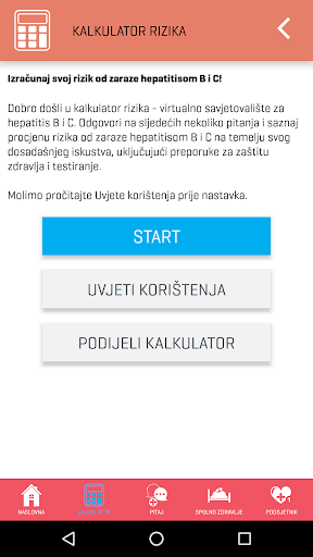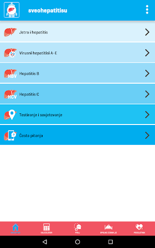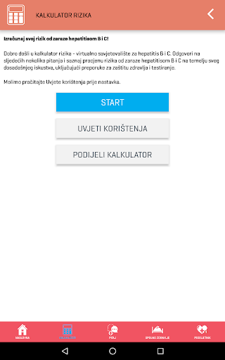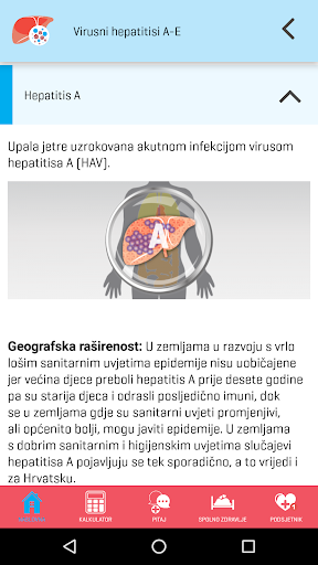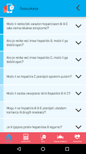 Aplikacija na jednostavan način pruža korisne i interaktivne usluge Kalkulatora rizika za informativan izračun procjene rizika od zaraze hepatitisom B i C, mogućnost postavljanja pitanja stručnjaku te Podsjetnik za jednostavno planiranje redovitog uzimanja lijekova ili bilo kojeg drugog zadatka ukoliko je to važno za Vaše zdravlje, liječenje i izlječenje.