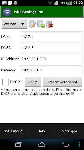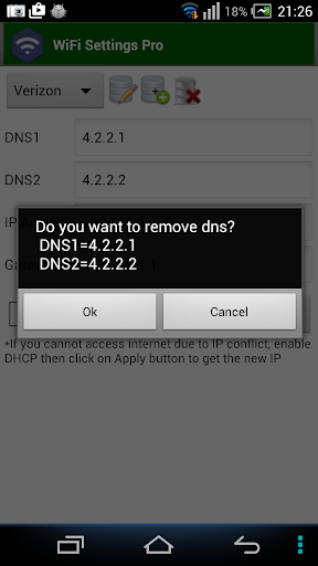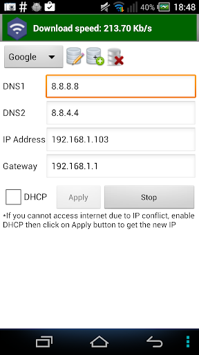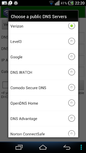 This app enables you to access the blocked sites by using some free DNS servers. If your device is unable to obtain IP address, let use this app. This app works perfectly on Android 2.3 and up. It supports for Android 5.x Lollipop too. On android 6.x, please use