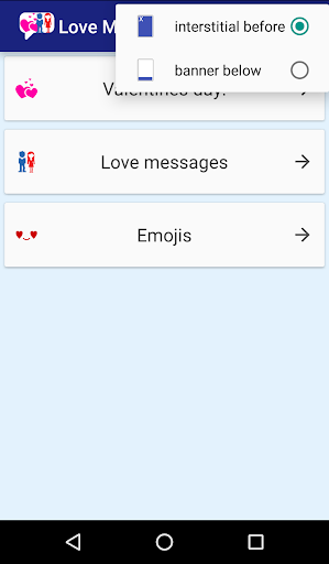 Now you can select the type of the banner: big interstitial once or small banner below.