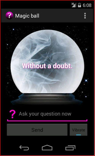 Ask the Magic Crystal Ball! Ask a yes-no question and find the answer anywhere, anytime. This is fun app Free of charge and the best thing its Add's Free. This application moveable to the sd card. Turn on/off vibrate.