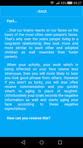 ...application warns you in a pre-set times and then displays the image you've selected.It is important to choose an image where you look the best. If you cannot find such picture, you can choose someone else's image, for example an actor who somewhat resembles you. When the image appears in the screen, imagine, the screen is a mirror and the current person in the mirror is you. You have to concentrate, otherwise it will not work! Let your mind know that you look like the person in the picture!