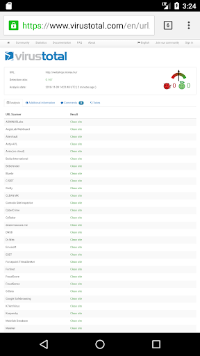 Just read any QR code containing an URL, this app scans it via an online URL checker service: VirusTotal for URLs, MetaDefender for IP addresses.