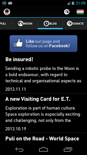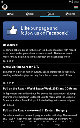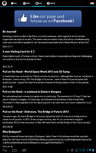 Puli Space Technologies is a Hungarian company that aims to land a self-made probe on the Moon by 2016 and thus complete the Google Lunar XPRIZE challenge. This App is to introduce the team, aslo containing articles and publications on the Moon and Hungarian space explorations, an interactive map of the Moon, and a 'secret' game.