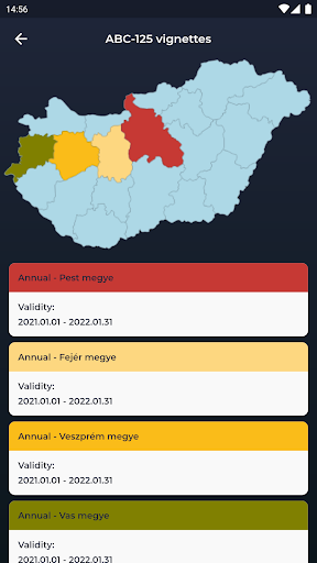 VIGNETTE MONITORING. With a dedicated menu item, the types of vignettes of vehicles and their validity periods can be viewed in an easy-to-understand map view and also in a list.