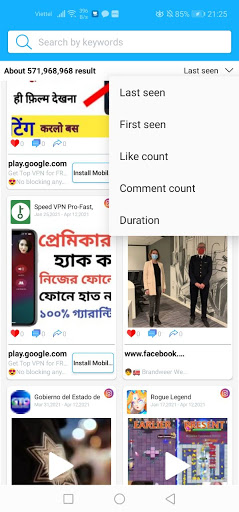 * Sort By: Last Seen, Like, Comments, Share