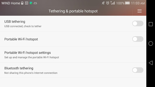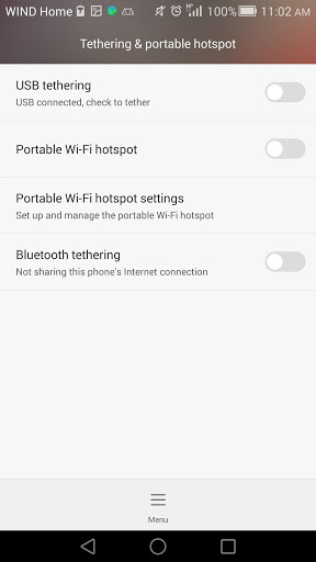 Shortcut that opens tether settings in Android.