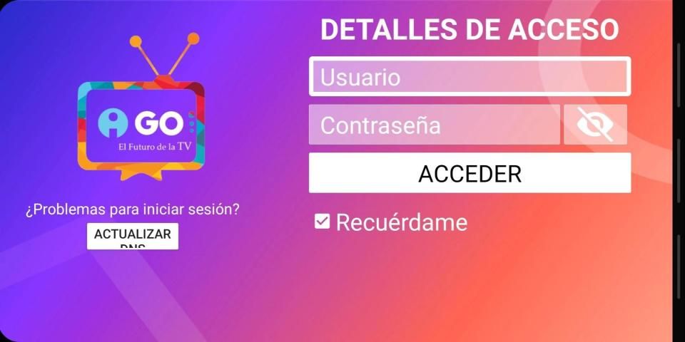 La aplicación no contiene canales. Para obtener usuario y contraseña ingresar a nuestra pagina web para adquirir tu servicio.
