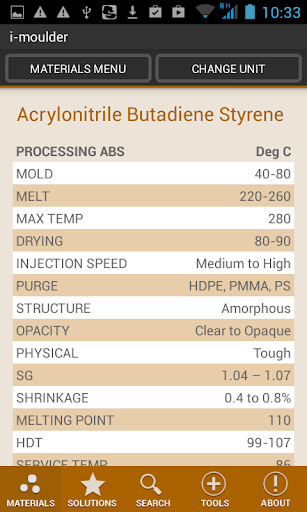 iMoulder contains a comprehensive database of plastic materials, solutions, molding calculations and general knowledge in a really handy stand alone package. .