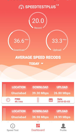 Speed Test Plus is Simple And Very Accurate Speed Testing Application which provide very accurate speed result of mobile and wifi connected device . It does not only provides the speed test result but provide features such as ip address, location,ping and provide a feature of getting average speed test value over week and month.