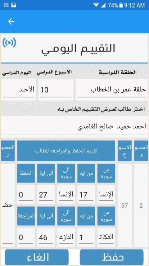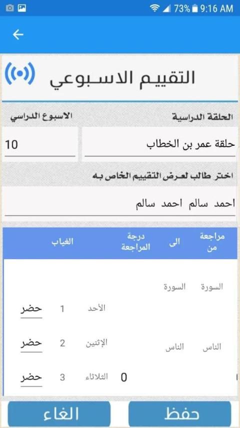 2. التقييم الاسبوعي او اليومي ومتابعة الحفظ والمراجعة للطلاب/الطالبات.
