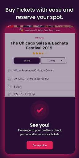With iDanceSocial, not only can you easily find and attend dance events, but you can also connect with other dancers, learn dance moves virtually on the app by subscribing to your favorite channels and easily RSVP and pay for events right on the app!