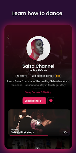 Subscribe to your favorite dance channels and learn new dance moves on the app