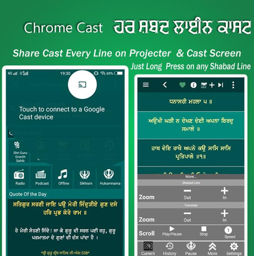 *Chrome Cast: Share Every Shabad on Tv Screen or Projector (just long press on any shabad line and share to cast screen)