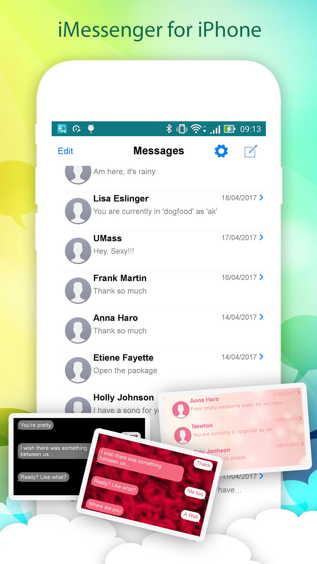iMessenger is a revolutionary messaging client for iPhone ? . iMessenger provides the ability to communicate with other android users who communicate with iMessenger, similar to the infamous android Messenger.