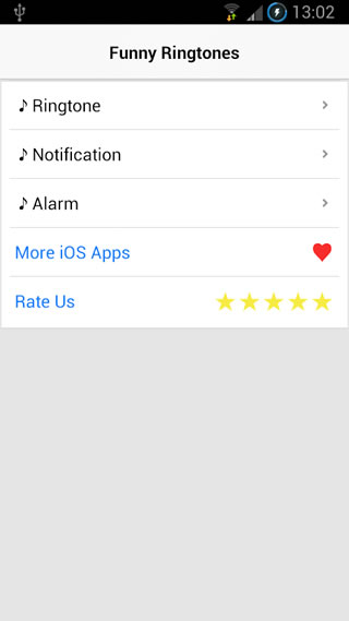For the first time, iOS7 Skin for Funny Ringtones. Get the look of iOS 7 Music Theme on your Android device. Android Funny Ringtones app contains high quality, crazy funny ringtone sounds and voices. Some of these funny ringtones are guaranteed to make you smile and laugh. You will love these funny ringtones. If you like this app, please just take a little time to review/rate the application, it helps out a lot.