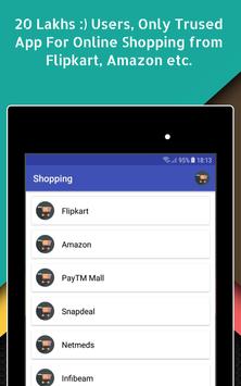 You need not visit all website and install their individual app for shopping.This app includes all popular shopping websites in India including flipkart, amazon, snapdeal, myntra, shopclues.