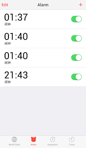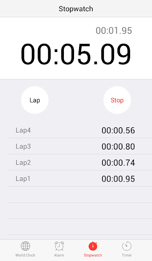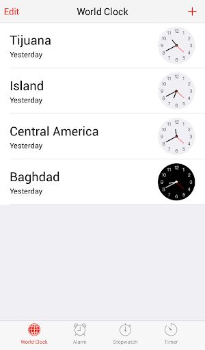 Phone X style clock with integrated world clock, alarm clock, timer and stopwatch