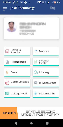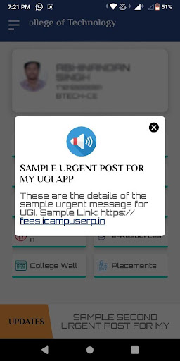 My UGI is an integrated platform with all information related to students : their attendance, internal marks, library records, e-resources and much more. It also provides information related to events, placement activities, gallery etc. Any student can log in via his student id and allotted password for access to all features.