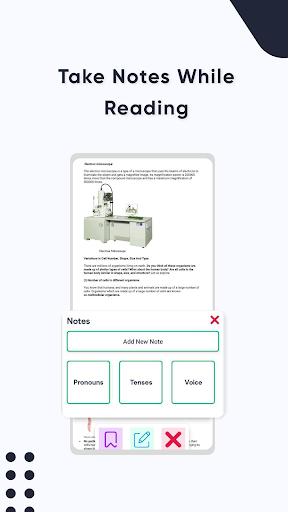 You can note down the essential points as simple notes in this app while studying, which is a great advantage for you. Using the bookmarks feature you can easily find the areas and pages where you left off.