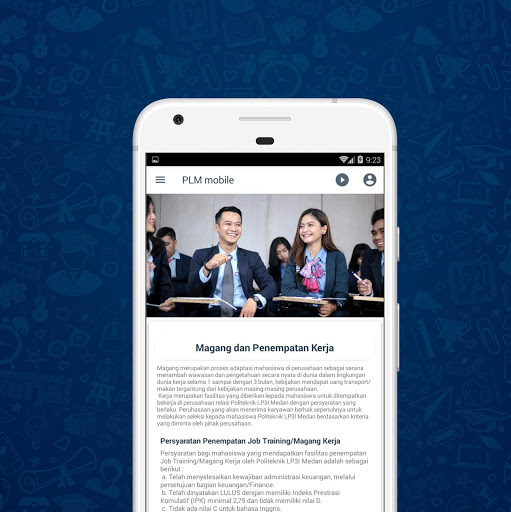 PLM Mobile merupakan aplikasi penyedia informasi mengenai Politeknik LP3I Medan dan informasi akademik untuk mahasiswa.