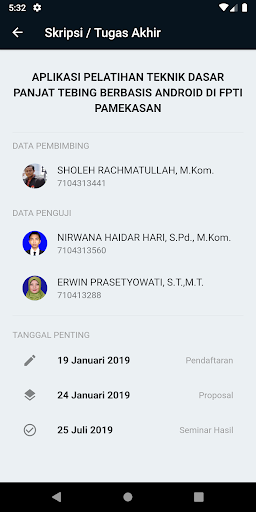 Dengan satu aplikasi maka mahasiswa dan orang tua mahasiswa dapat memantau perkembangan pendidikan dari awal semester sampai proses pengerjaan Tugas Akhir / Skripsi.