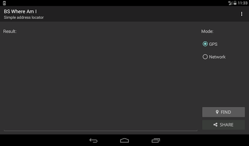 Also available on home screen by using a simple widget. Tap on the little image to start finding. Tap on the resulting address to share it. That simple.