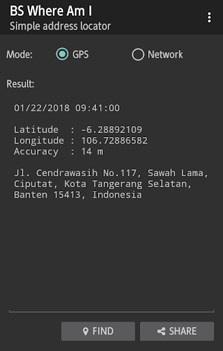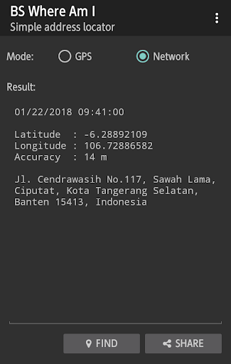 Location is retrieved either using GPS or WiFi/network and address is retrieved from Google. Select the finding mode to your need, for example GPS works best on open area while WiFi/Network can show location although you are inside a building.