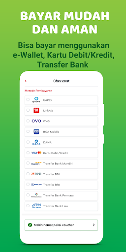 Pasarlokal.id provides a choice of various payment methods, ranging from e-wallet (Gopay, OVO, Funds, LinkAja), QRIS (BCA Mobile, OCTO Mobile by CIMB NIaga, M-Smile by Bank Mega, PermataMobile X, etc.), Transfers to Virtual Account (Mandiri, BNI, BRI, Permata), Credit / Debit Cards Online