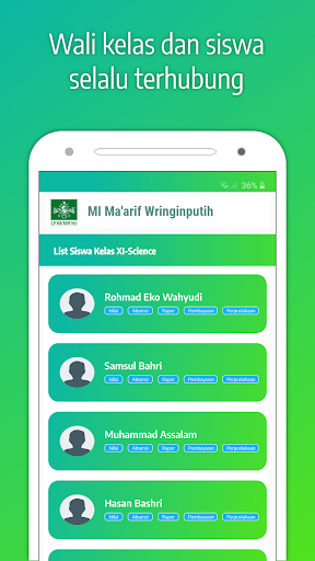 이 응용 프로그램은 MI Ma'arif Wringinputih에 속하며 학교 관리 및 온라인 수업의 웹 사이트 정보 및 관리가 포함되어 있습니다. 이 응용 프로그램 기능은 다음과 같습니다.