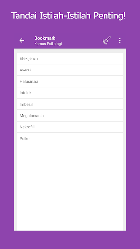 Dengan aplikasi ini, anda akan menemukan berbagai kata yang berhubungan dengan segala hal di dalam ilmu Psikologi dengan mudah.