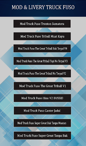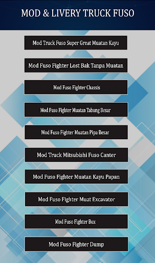 Aplikasi mod truck fuso ini memiliki beragam jenis mod kendaran untuk game bus simulator indonesia, khususnya untuk game mod truck fuso bussid. Terdapat lebih dari 15 mod truck fuso yang ada, seperti :