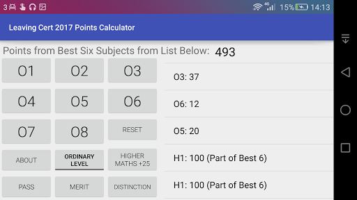 Turn your device landscape to get a breakdown of what was entered and what was included in your best six subjects.