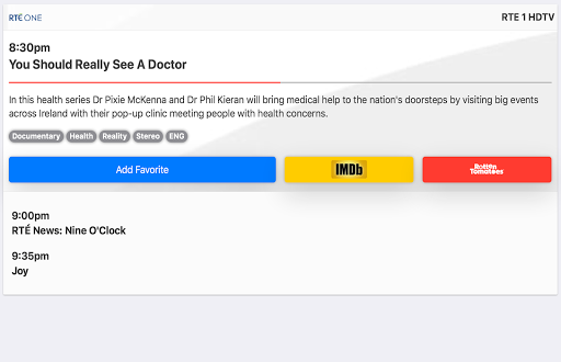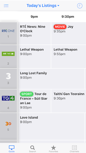 ★ Look up instantly what's on TV in Ireland right now, tonight or later this week!