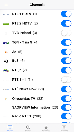 Viewers can browse the schedule of every Irish channel, listed in every region of Ireland, including local Free channels, Sky and Virgin. If a TV channel is not often watched, it can be removed from the guide instantly and put back on if desired.