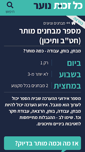 Kol Zchut Teen" is part of the Kol Zchut website, the leading site about rights and entitlements in Israel. Kol Zchut serves millions of Israelis with information about their rights in all areas of life, free and not-for-profit. Since 2017 it is supported by the Israel government.