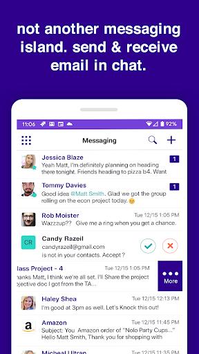 Great app. We can do email and messaging in one place using this app. Also can make voice/video calls. Great one which is getting better on every update.