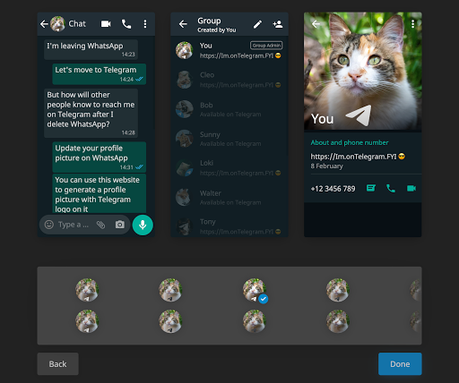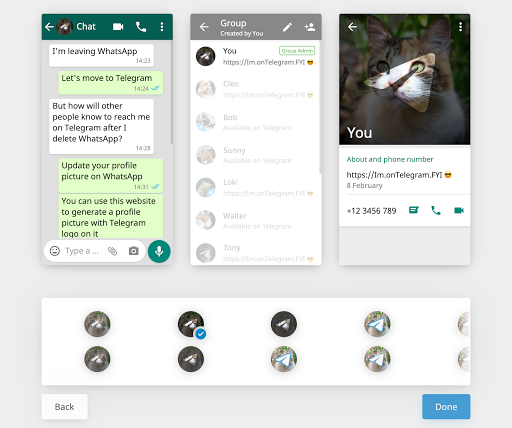 Show your WhatsApp contacts you're on Telegram by updating your profile picture on WhatsApp.