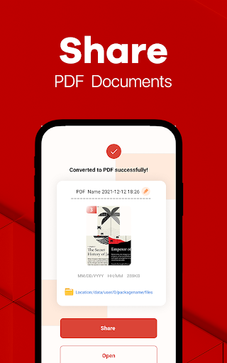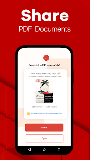 Pic to PDF Files can be easily sent and shared through social media, Bluetooth, Email, etc within one click.
