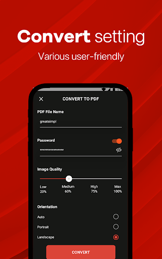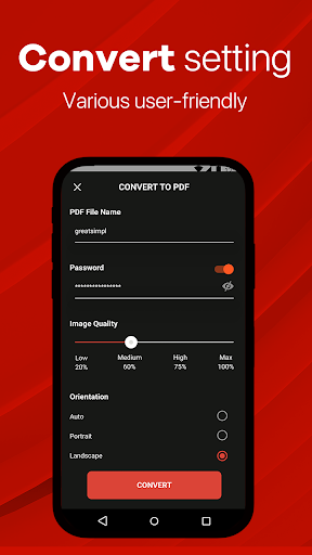 Image to PDF Converter app can protect PDF files by setting personal password and also can prevent information leakage in sharing the encrypt the confidential files.