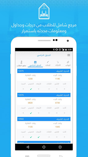 معلومات الطالب, الجدول الدراسي, الدرجات, جدول الامتحانات,..
