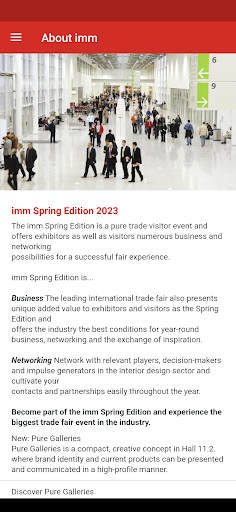 The Mobile Guide for imm Spring Edition is the interactive event guide for the event from 04-07 June 2023