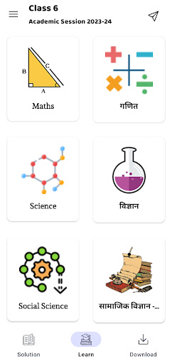 Class 6 all Subjects Solutions in Hindi and English Medium updated for session 2023-24. Students can take help from this app to understand the chapter and exam preparation. It contains the Solutions based on latest Syllabus for 2023-24 in the following subjects in Hindi Medium and English Medium.
