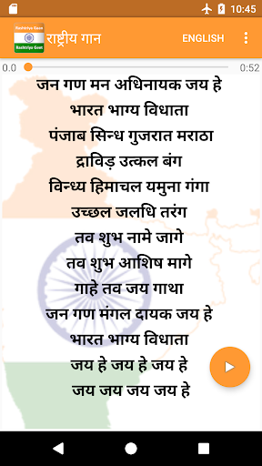 Features 1. Single app for audio and lyrics. 2. Contains both National Anthem(Jana Gana Mana) and National Song(Vande Mataram) 3. Offline app