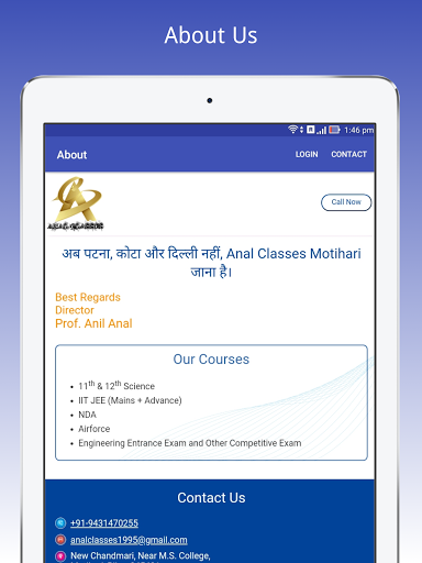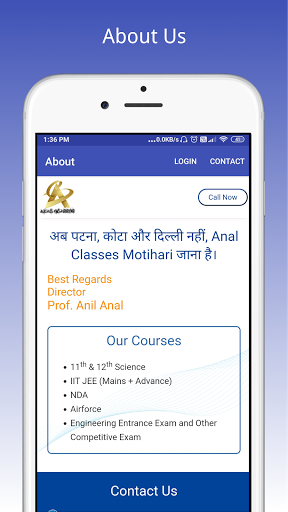 Anal Classes is recognized as one of the best Engineering and Medical coaching center in Motihari under the directorship of Prof. Anil Anal (Has been teaching Maths since 1995). Anal Classes provides best coaching classes for IIT (Mains & Advance), Medical & other Engineering entrance exam by expert Faculty.