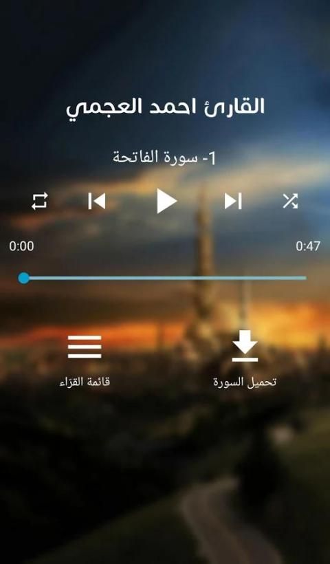 استمع الى القرآن الكريم بصوت القارئ الشيخ احمد العجمي مع امكانية تحميل السور وتشغيل التطبيق بدون انترنت